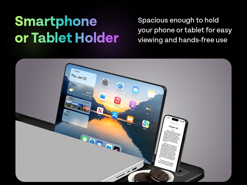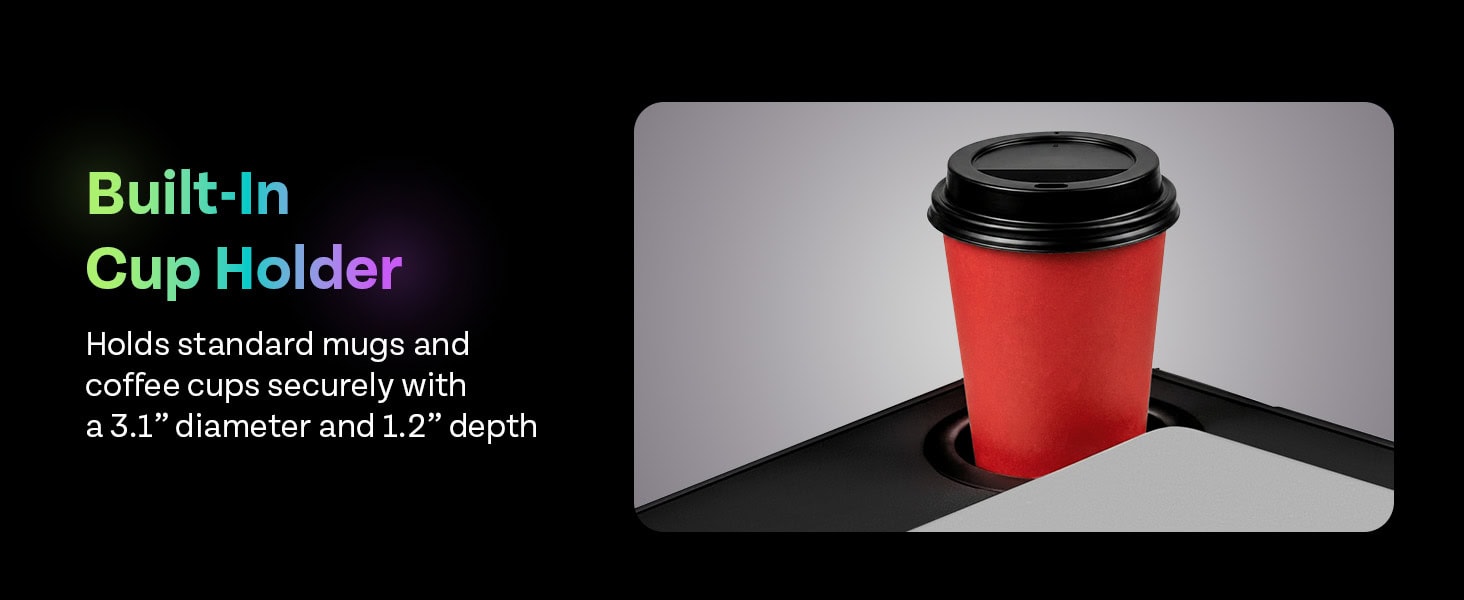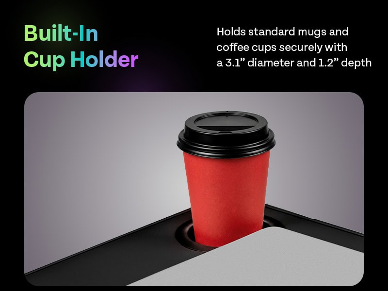 Yes. It includes built-in holders for a cup and a phone or tablet, so your essentials stay organized, visible, and within easy reach while you work or relax.