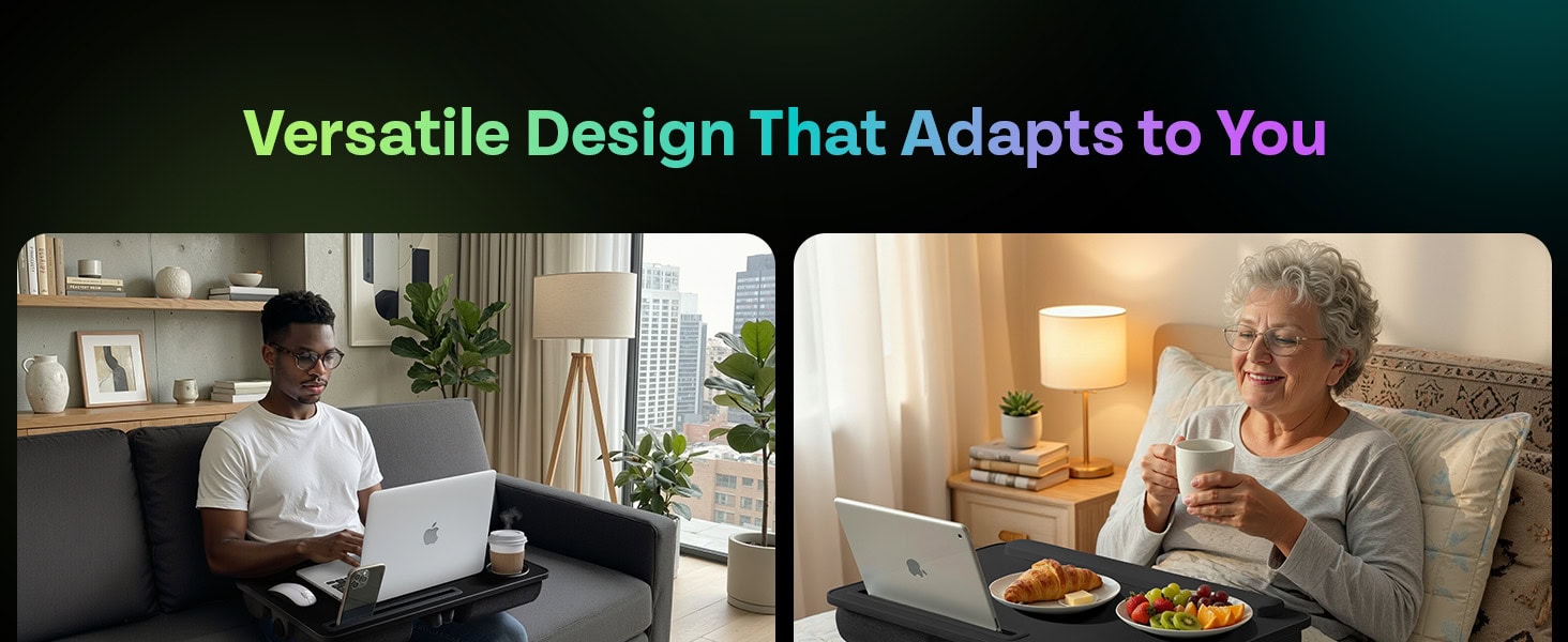 Work how you want, where you want. Use it as a raised lap tray with legs on the bed or as a cushioned laptop lap desk on the couch. Perfect for focused freelancers and busy students.