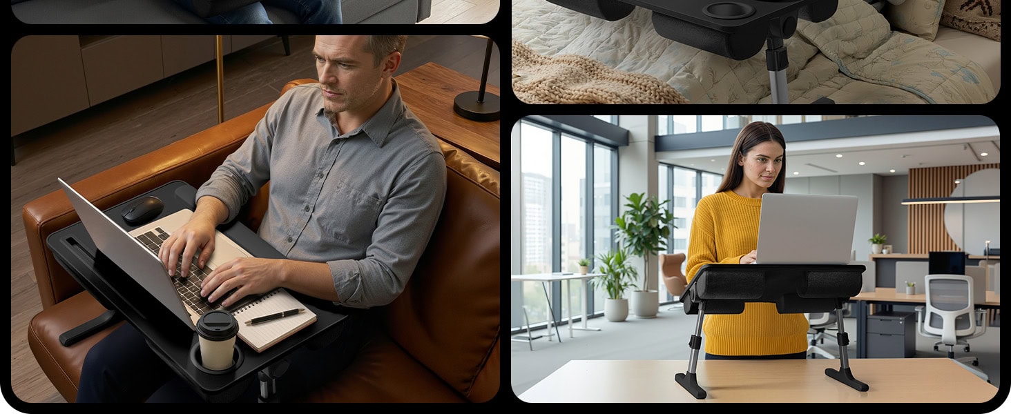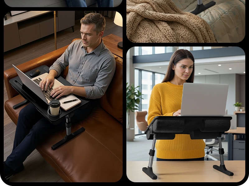 I work from home a few days a week and got this because I was tired of balancing my laptop on pillows. Honestly, this made a real difference. It feels much more stable than I expected, and I like that I can keep my phone and coffee in one place instead of all over the couch. The cushion part is also more comfortable than the hard lap desks I’ve tried before.