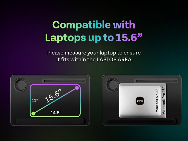 Designed for working in bed or on the sofa, this laptop bed desk features a solid, balanced base that stays steady through hours of typing, writing, browsing, or exam cramming. No distracting wobble!